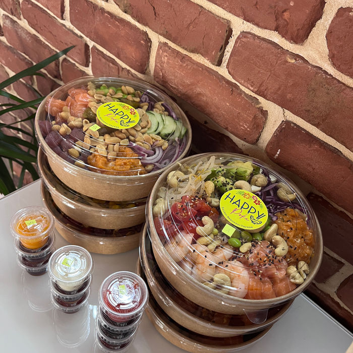 Da Happy Poke puoi trovare un ambiente moderno e accogliente dove gustare svariate pietanze fresche tra cui le nostre magnifiche poke, freschissime centrifughe, i ravioli cinesi fatti a mano, i favolosi bao salati o dolci e per concludere in bellezza i mochi in 8 gusti.